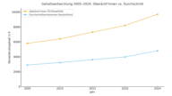 Entwicklung im Vergleich: Tarifgehalt Oberarzt*ärztin, deutsches Durchschnittsgehalt